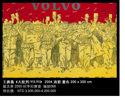 用「鹹魚翻身」一詞形容最近兩年拍賣會上異軍突起的中國當代藝術,乍聽有幾分挖苦意味,但筆者在此其實無貶抑之意,僅僅是藉以說明市場中某些現實的情況。過去,華人當代藝術家的作品鮮少能躍上拍賣市場的舞台 ,因為往昔拍賣會絕對是第一 、二代老畫家們的交易平台,年輕藝術家、特別是具有顛覆性格的前衛藝術家,幾乎不可能有此機會 ,多數畫商避之唯恐不及 ,僅有少數較具理想性格的畫廊經營者,或者非營利的替代空間,才可能長期挹注前衛藝術的發展。前一陣子幾趟北京、上海回來,看到都市建設正在不斷更新,藝術圈的氣氛相當蓬勃,經營十多年當代藝術畫廊開始轉虧為盈了,也聽說昔日住在藝術村裡的窮畫家,因為經濟轉好了,已有能力買樓房、買汽車。這些畫家們幾年前還在跟現實環境拔河,才幾年光景,市場真的變了!連過去主力銷售老畫家的畫商們,一年間紛紛改弦易轍,開始走向年輕化、中國化的策略;昔日只看前輩藝術家的收藏家們,一時間似乎也青春洋溢了起來。這波中國當代藝術風潮,竟意外地給藝術市場帶來一股時尚感呢。