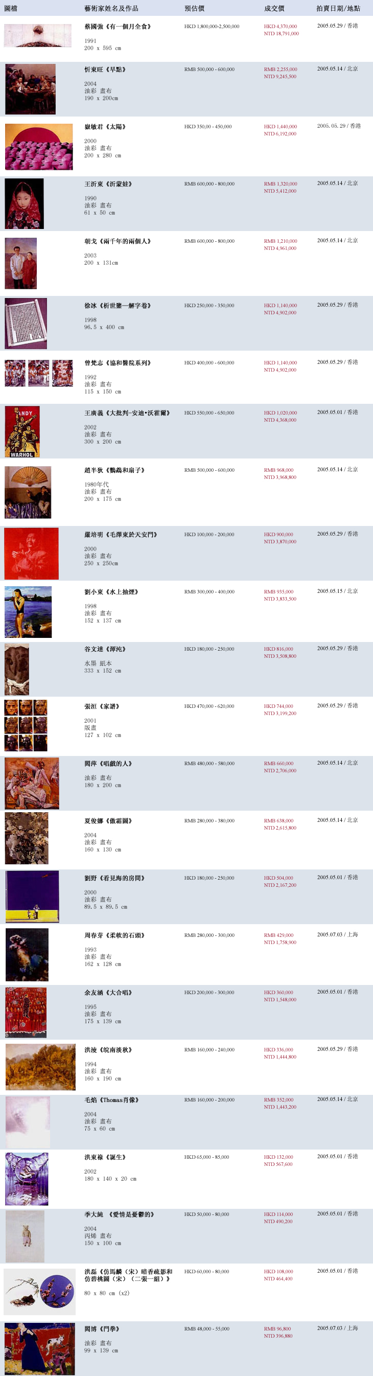 中國前衛藝術家及其個人2005年拍賣新高紀錄